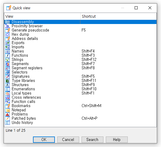IDA 단축키를 보고 싶을때는 Ctrl + 1 로 Quick View를 보자.