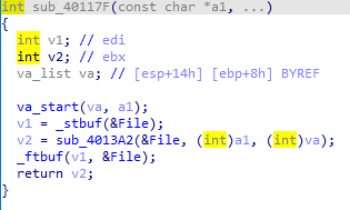 문자열 뒤 \n 값을 통해 sub_40105F가 printf 함수라고 알 수 있다.