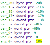 이 함수의 지역 변수는 음의 오프셋에 대응하고, 파라미터는 양의 오프셋으로 참조한다.