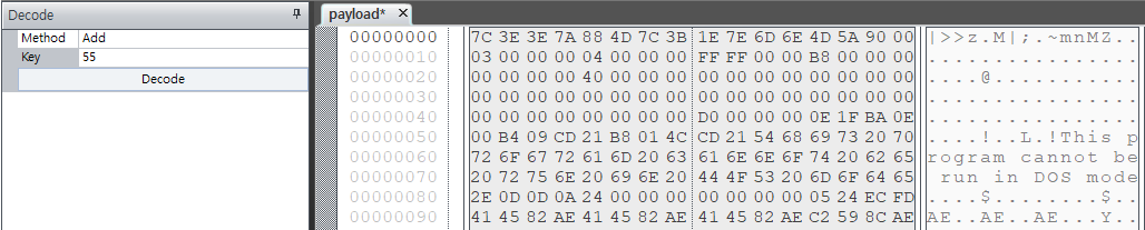 이렇게 하면 복호화된 PE파일을 구할 수 있다.