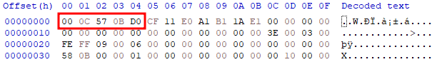 처음 4바이트는 삭제하자. 그래야지 OLE개체로 인지할 수 있다.
